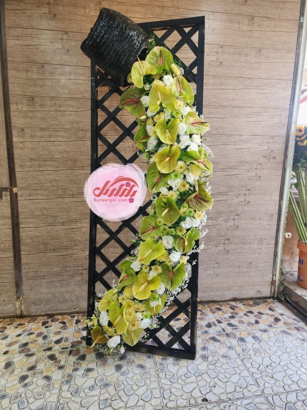36شاخه انتریم،داوودی مینیاتوری، لیسیانتوس، ژیپسوفیلیا، تزیین در پایه مشبک چوبی